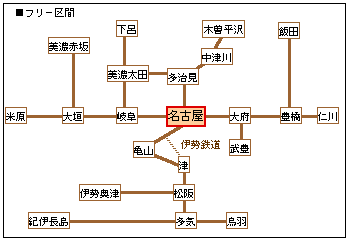 ※フリー区間内は快速「みえ」、普通列車乗り降り自由