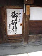 櫛問屋「旧中村家」の入口、高さが150センチ位の潜り戸となっていた。木造2階建てで、正面2階外壁は1階より張り出している出梁造り。