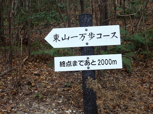 歩いて行くと東山1万歩コースと書かれた標識板が要所要所にあり、それを目印に進めば良い。